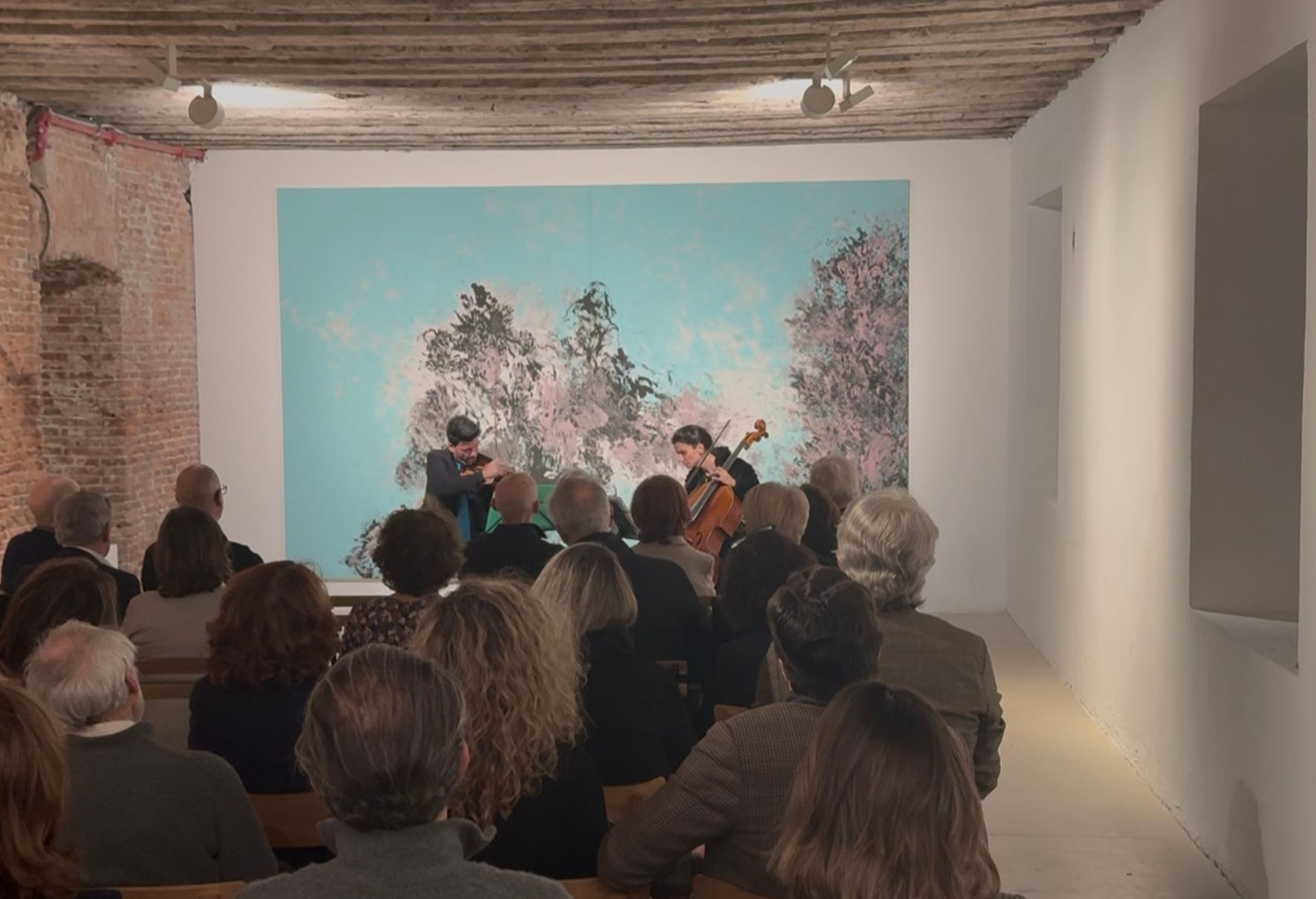 El acto continuó con un vino español, momento de encuentro y celebración entre amigos, coleccionistas y amantes del arte, y culminó con un concierto íntimo de violonchelo y violín que cerró la tarde con una nota de profunda belleza y emoción.