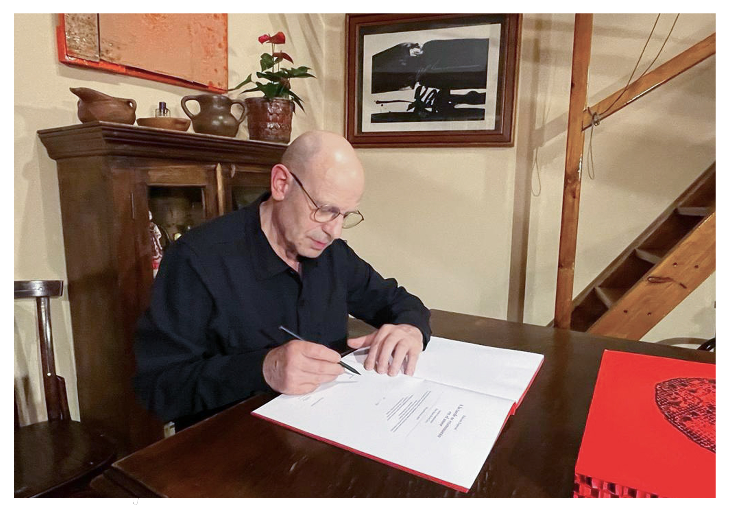 Libro Bibliófilo poético/artístico de 12 ejemplares únicos. El Fuera de Serie "A la tarde te examinarán en el amor" está publicado en 2023. Una obra de Edición Especial del artista Antón Lamazares, ilustrando diferentes poemas de San Juan de la Cruz, firmado y numerado. Compuesto por un Estuche laminado con obra en la cubierta y pintado en rojo, con el libro artesanal encuadernado a la japonesa (hilo visto).